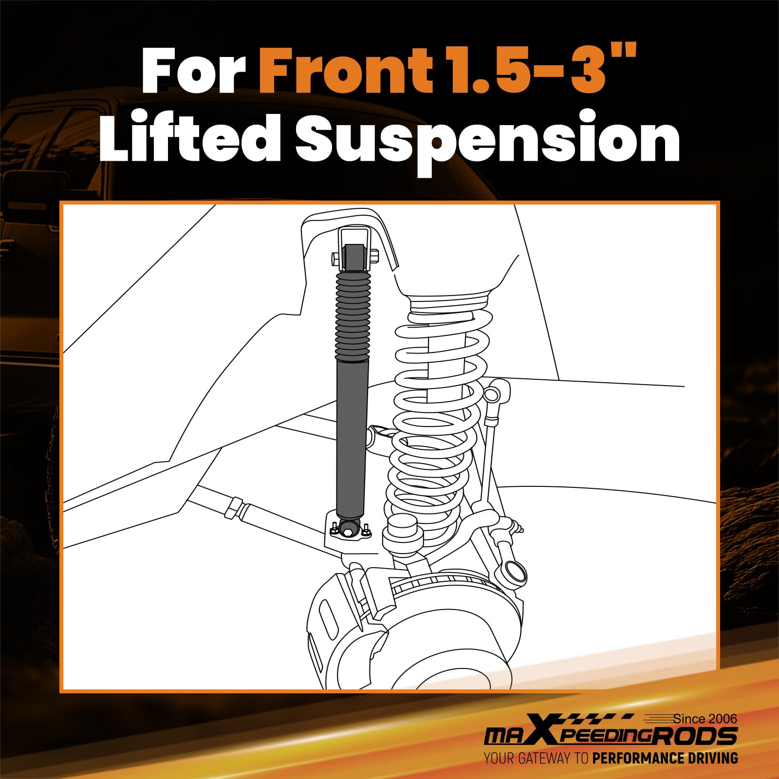 - ăFor Front Lifted SuspensionăThe shock does not directly lift the suspension. Factory shocks lack travel after the suspension is lifted, while this shock provides a longer travel, making it ideal for 1.5-3" lifted suspensions