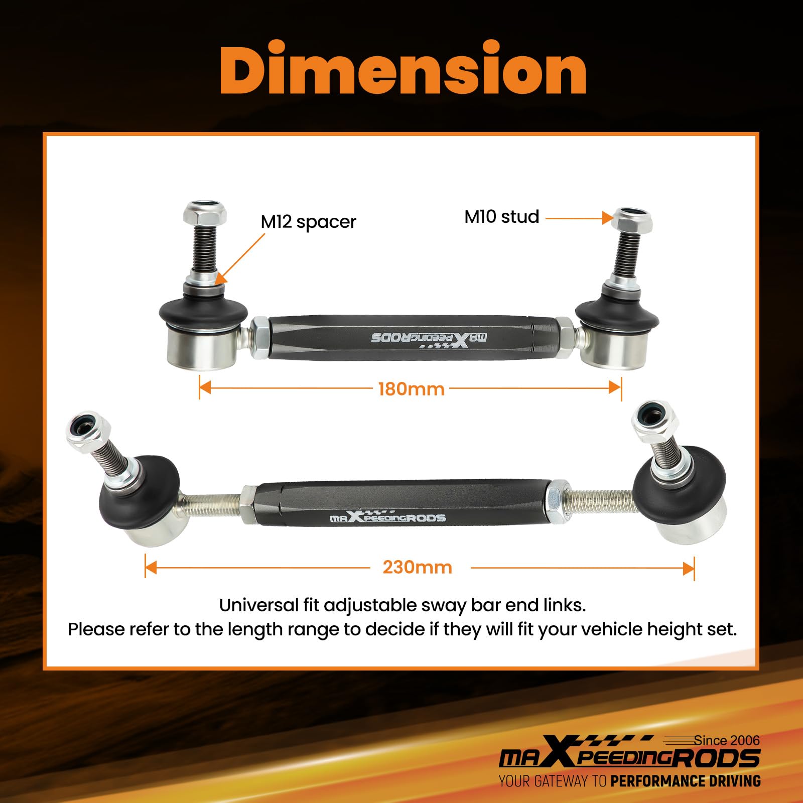 - [Wide Adjustment Range] These end links provide a stud-to-stud adjustment range of 180mm-230mm, making them suitable for various vehicle heights